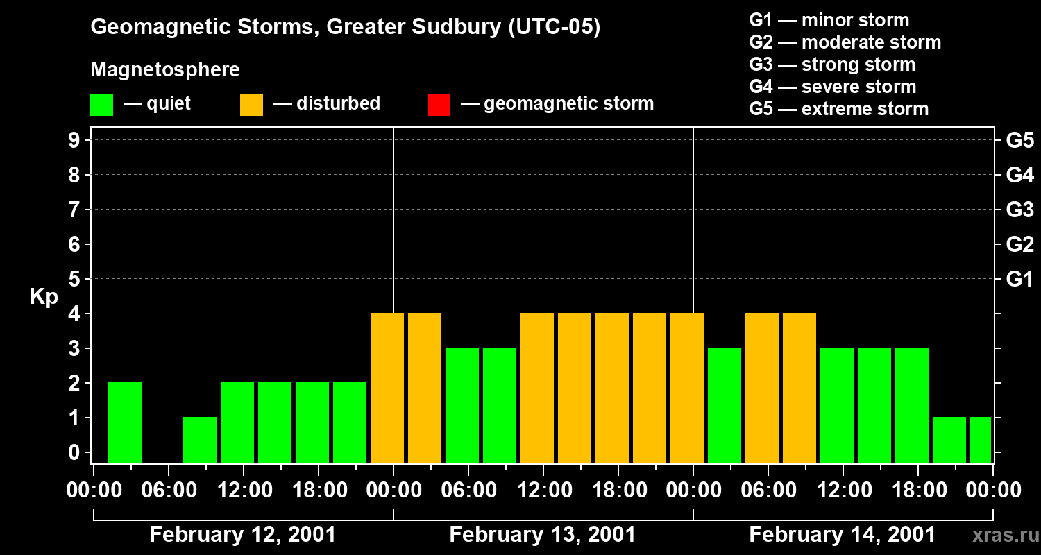 Geomagnetic storms in Greater Sudbury on Feb 14, 2001
