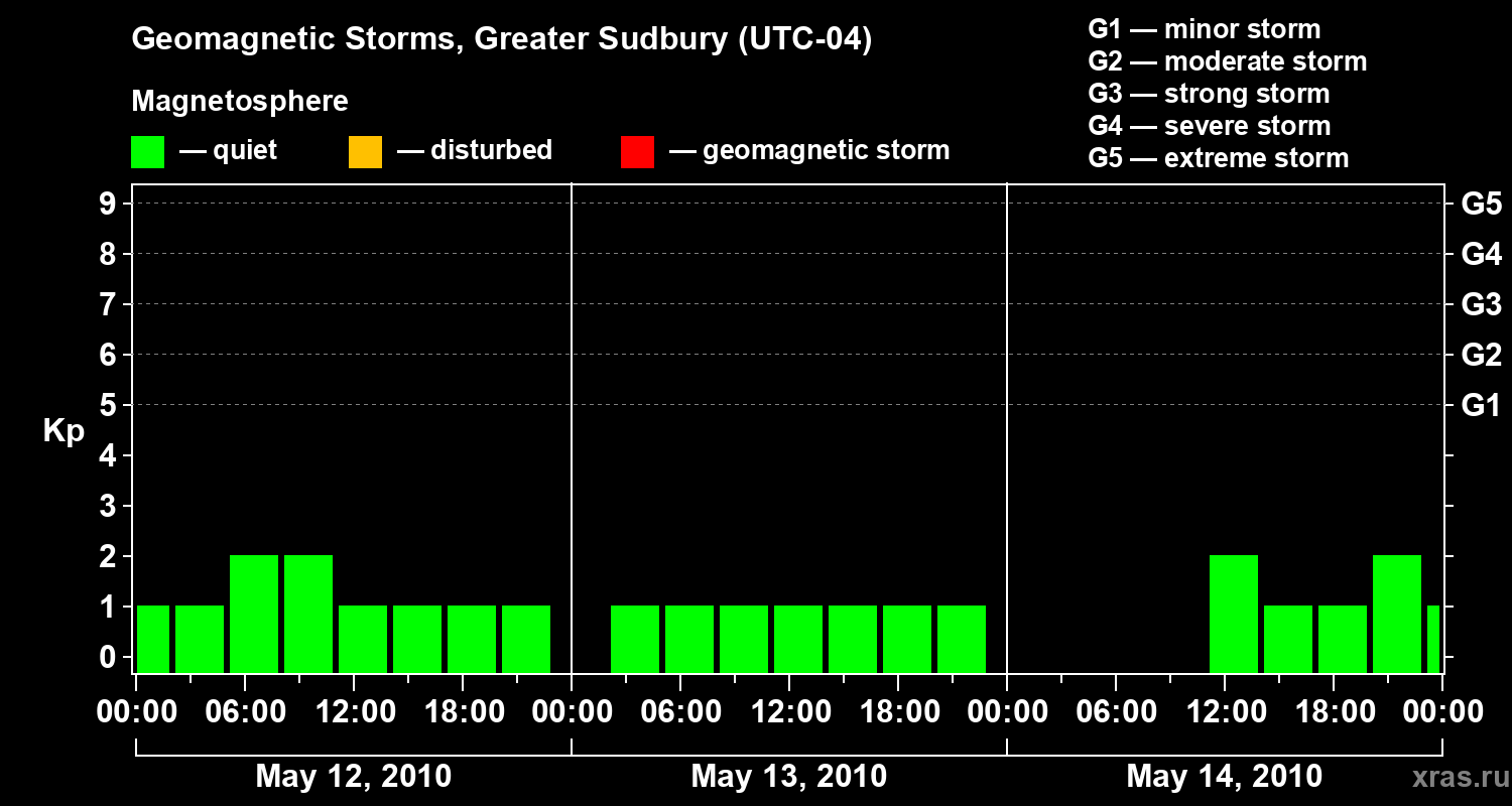 Geomagnetic storms in Greater Sudbury — May 14, 2010