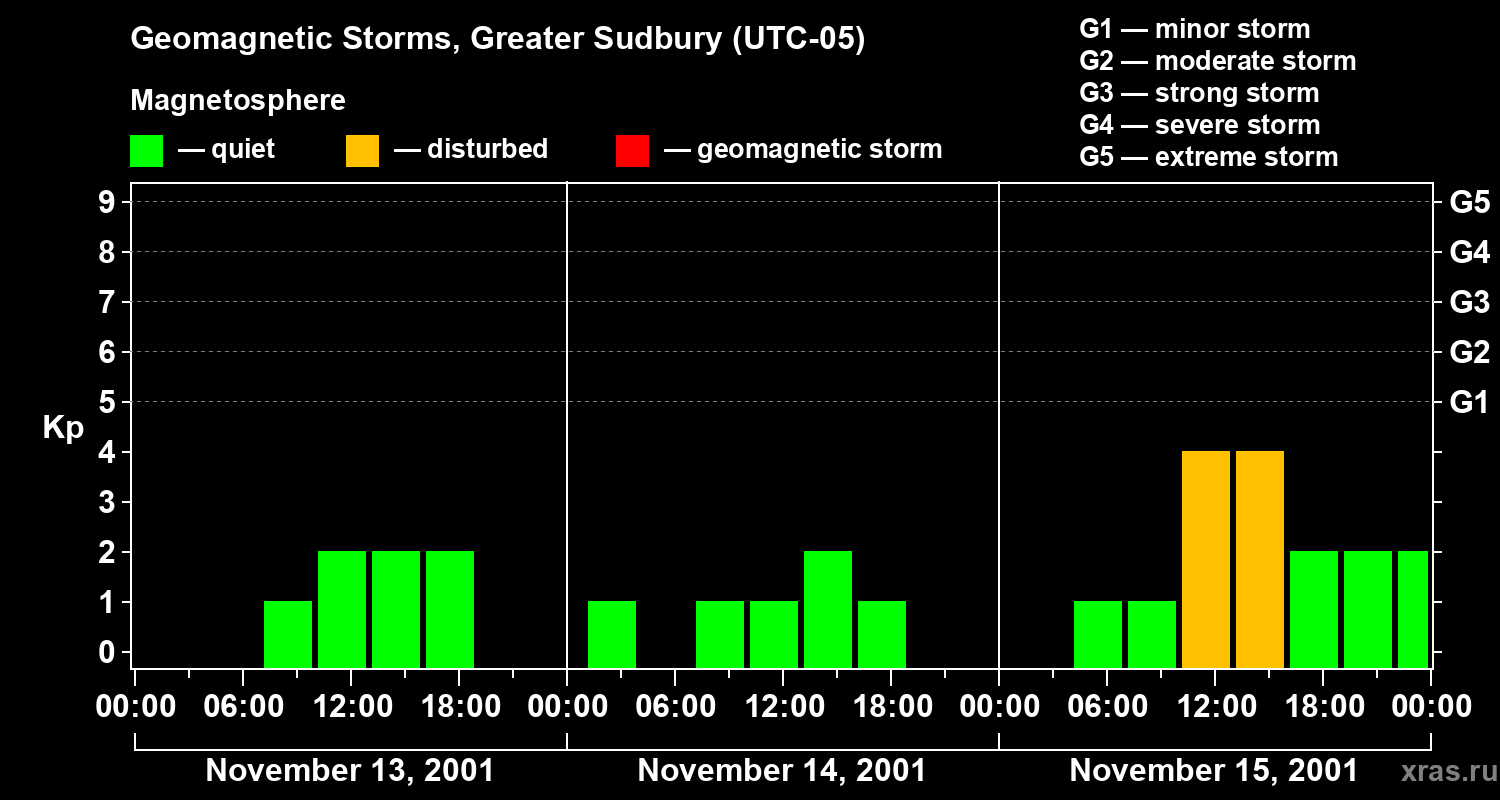 Geomagnetic storms in Greater Sudbury on Nov 15, 2001