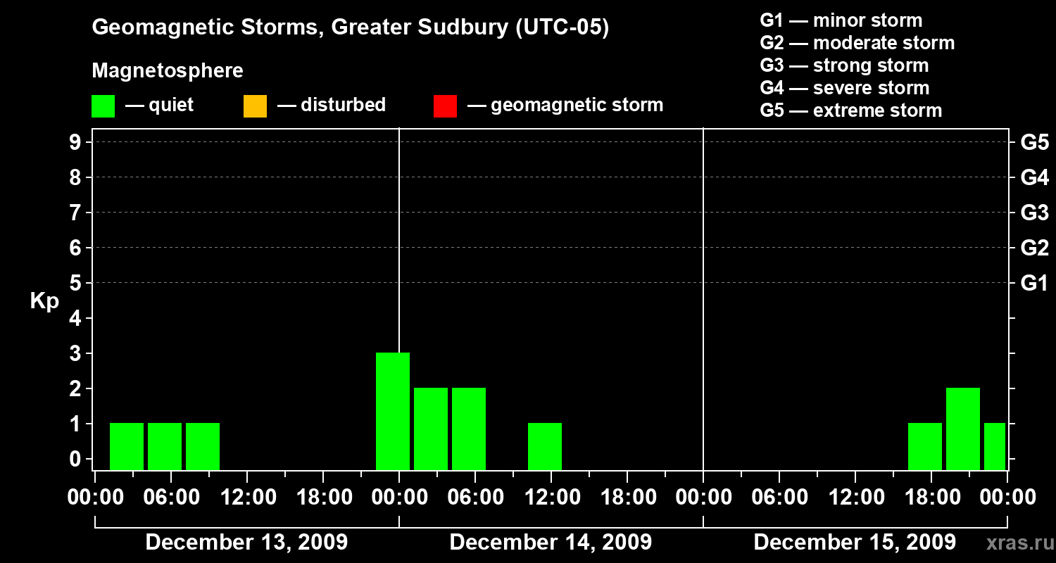 Geomagnetic storms in Greater Sudbury on Dec 15, 2009