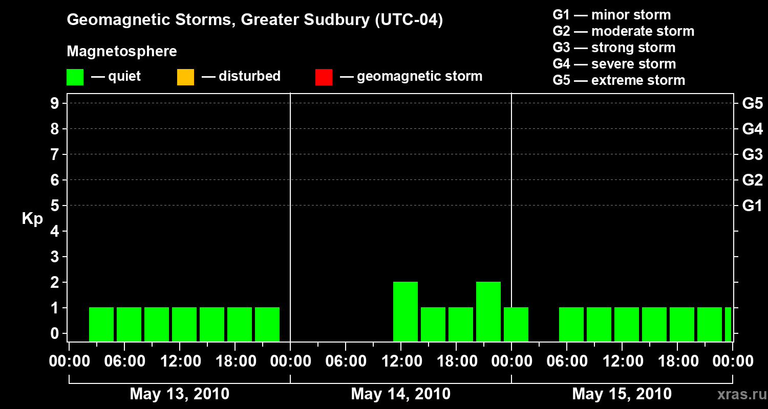 Geomagnetic storms in Greater Sudbury on May 15, 2010