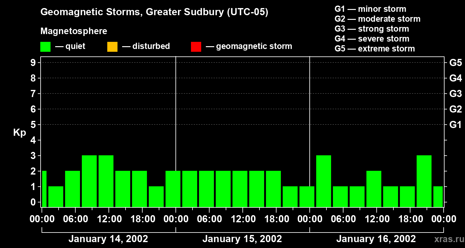 Geomagnetic storms in Greater Sudbury on Jan 16, 2002