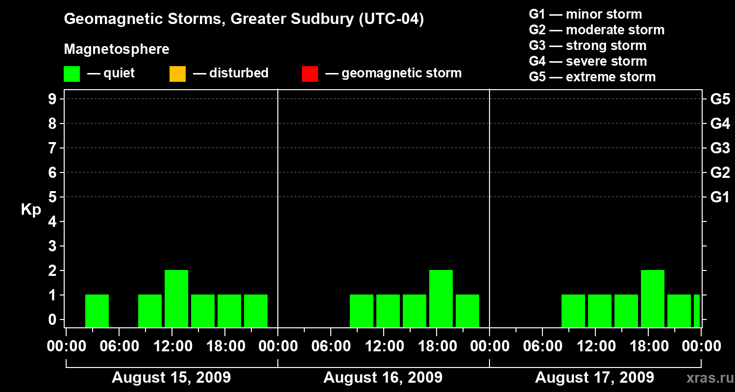 Geomagnetic storms in Greater Sudbury on Aug 17, 2009