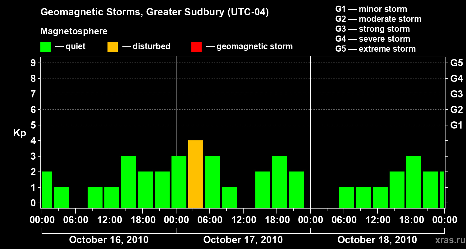 Geomagnetic storms in Greater Sudbury on Oct 18, 2010