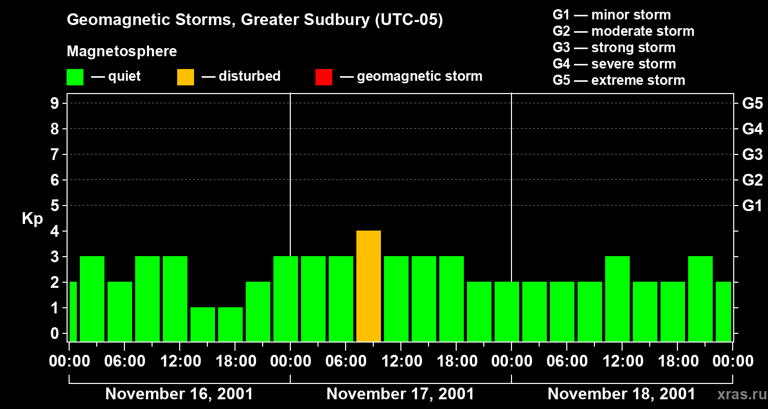 Geomagnetic storms in Greater Sudbury on Nov 18, 2001