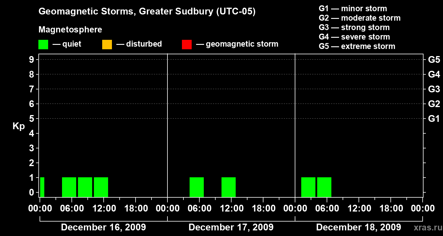 Geomagnetic storms in Greater Sudbury on Dec 18, 2009