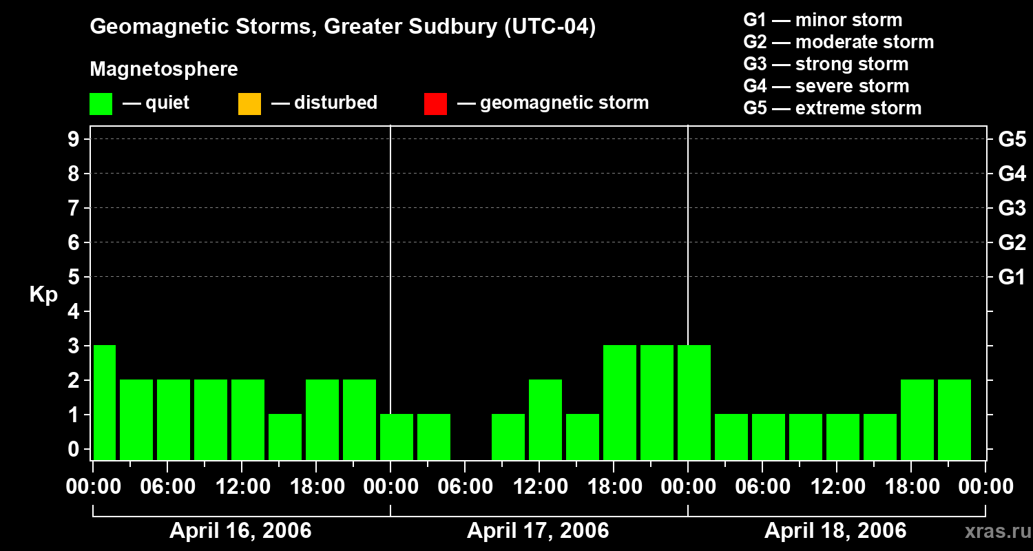Geomagnetic storms in Greater Sudbury on Apr 18, 2006