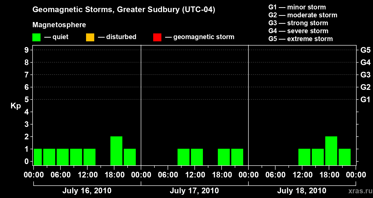 Geomagnetic storms in Greater Sudbury on Jul 18, 2010