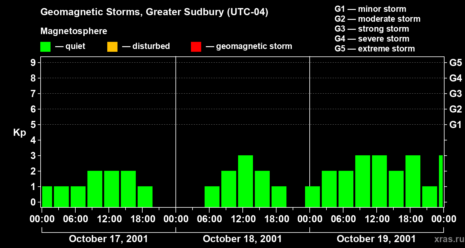 Geomagnetic storms in Greater Sudbury on Oct 19, 2001