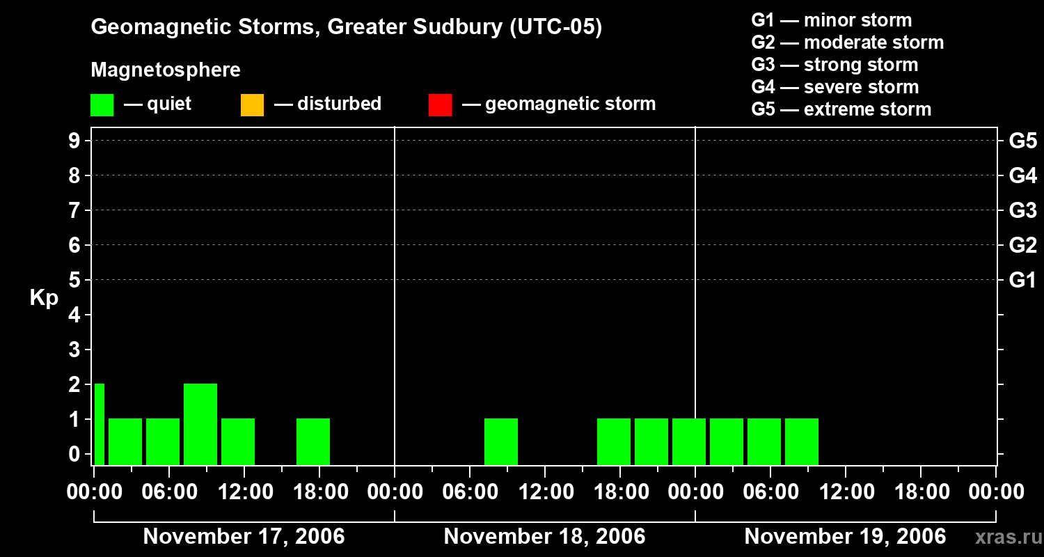 Geomagnetic storms in Greater Sudbury on Nov 19, 2006