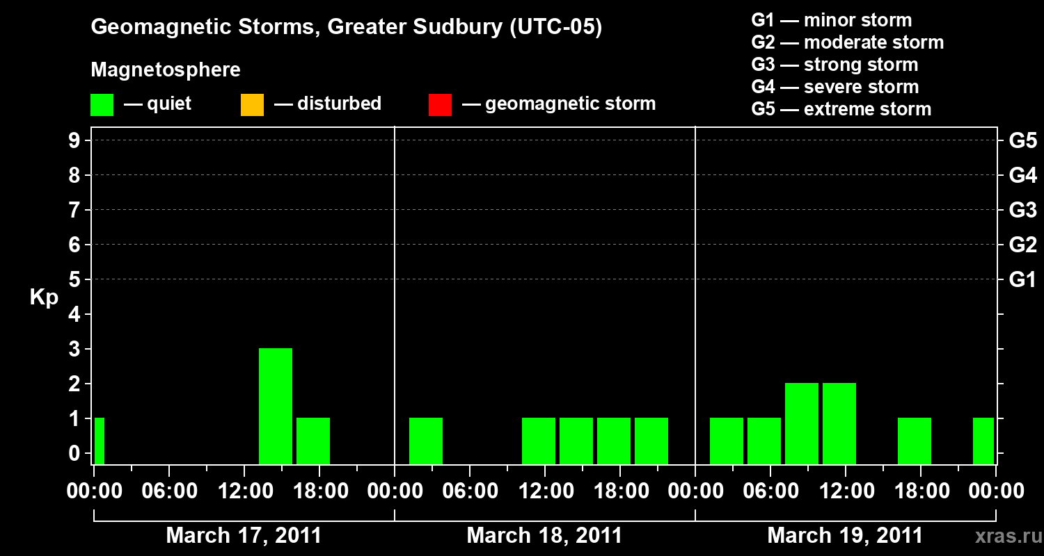 Geomagnetic storms in Greater Sudbury in March 2011