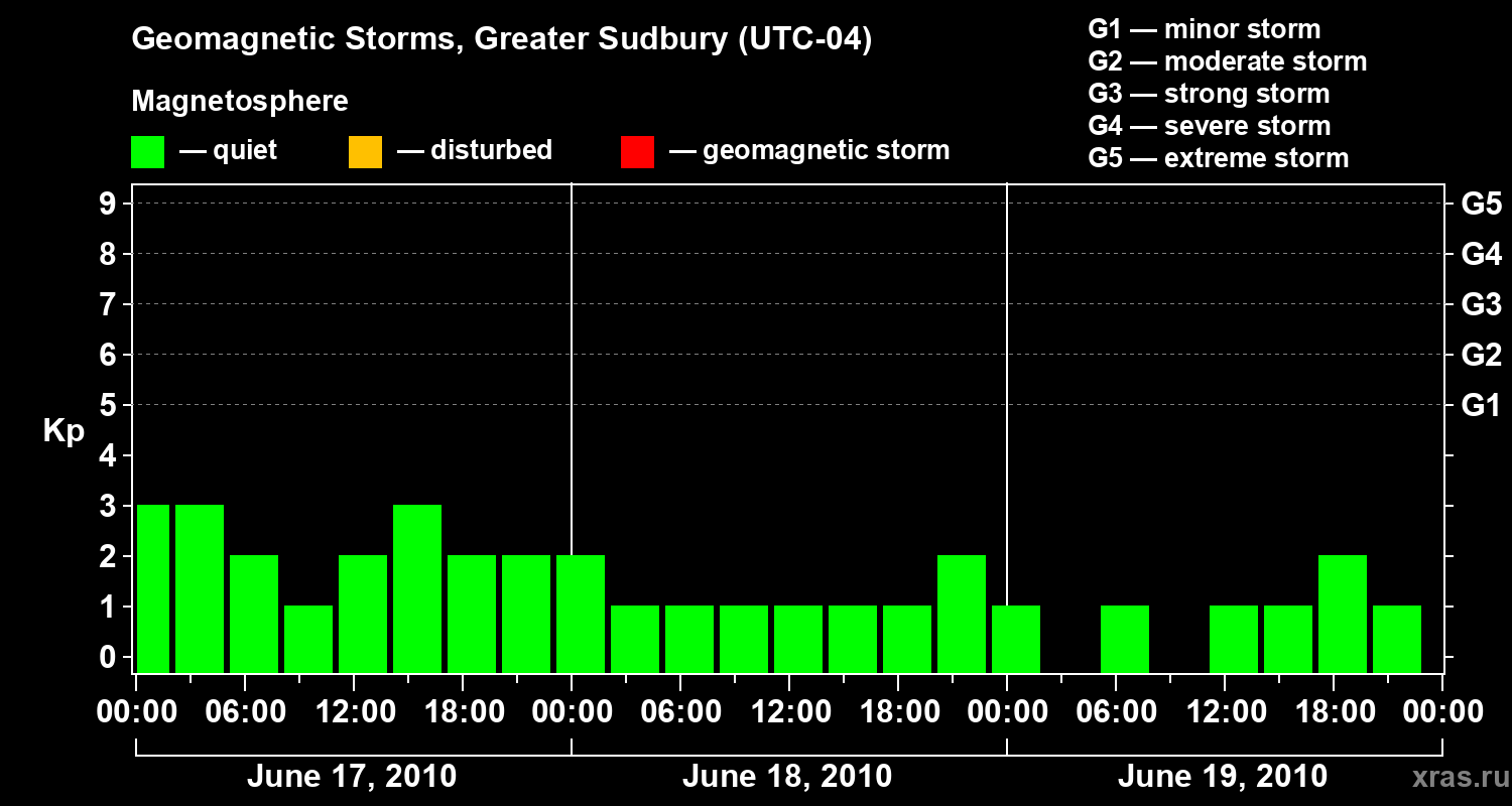 Geomagnetic storms in Greater Sudbury on Jun 19, 2010