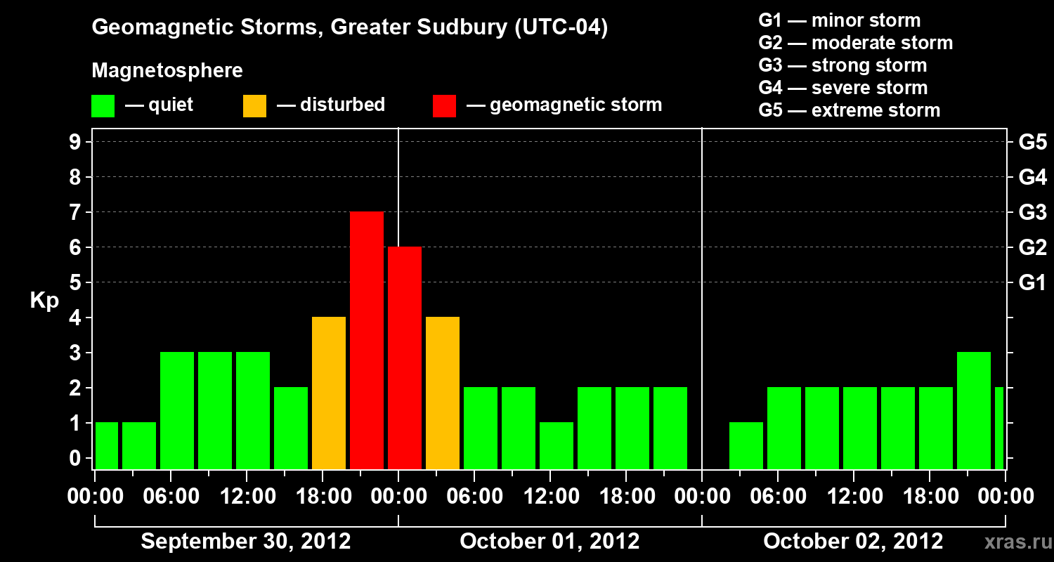 Geomagnetic storms in Greater Sudbury — Oct 02, 2012