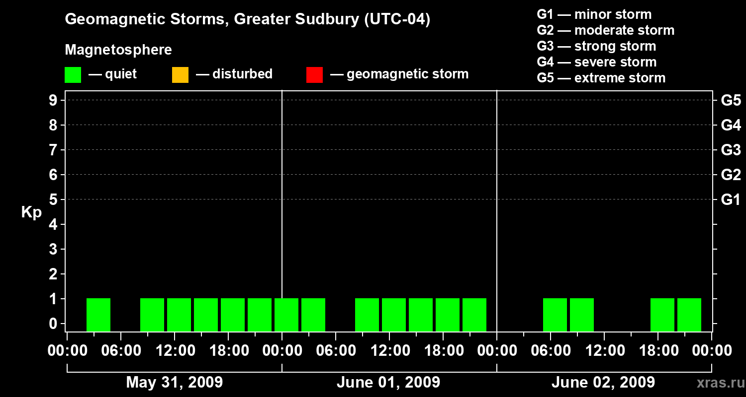 Geomagnetic storms in Greater Sudbury on Jun 02, 2009