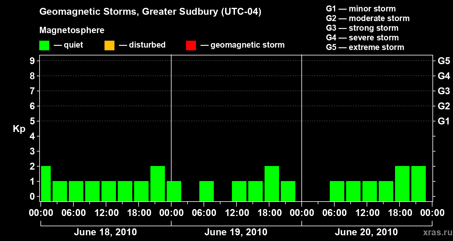 Geomagnetic storms in Greater Sudbury on Jun 20, 2010