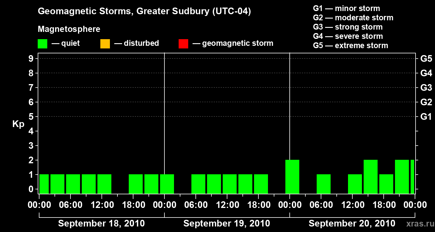 Geomagnetic storms in Greater Sudbury on Sep 20, 2010