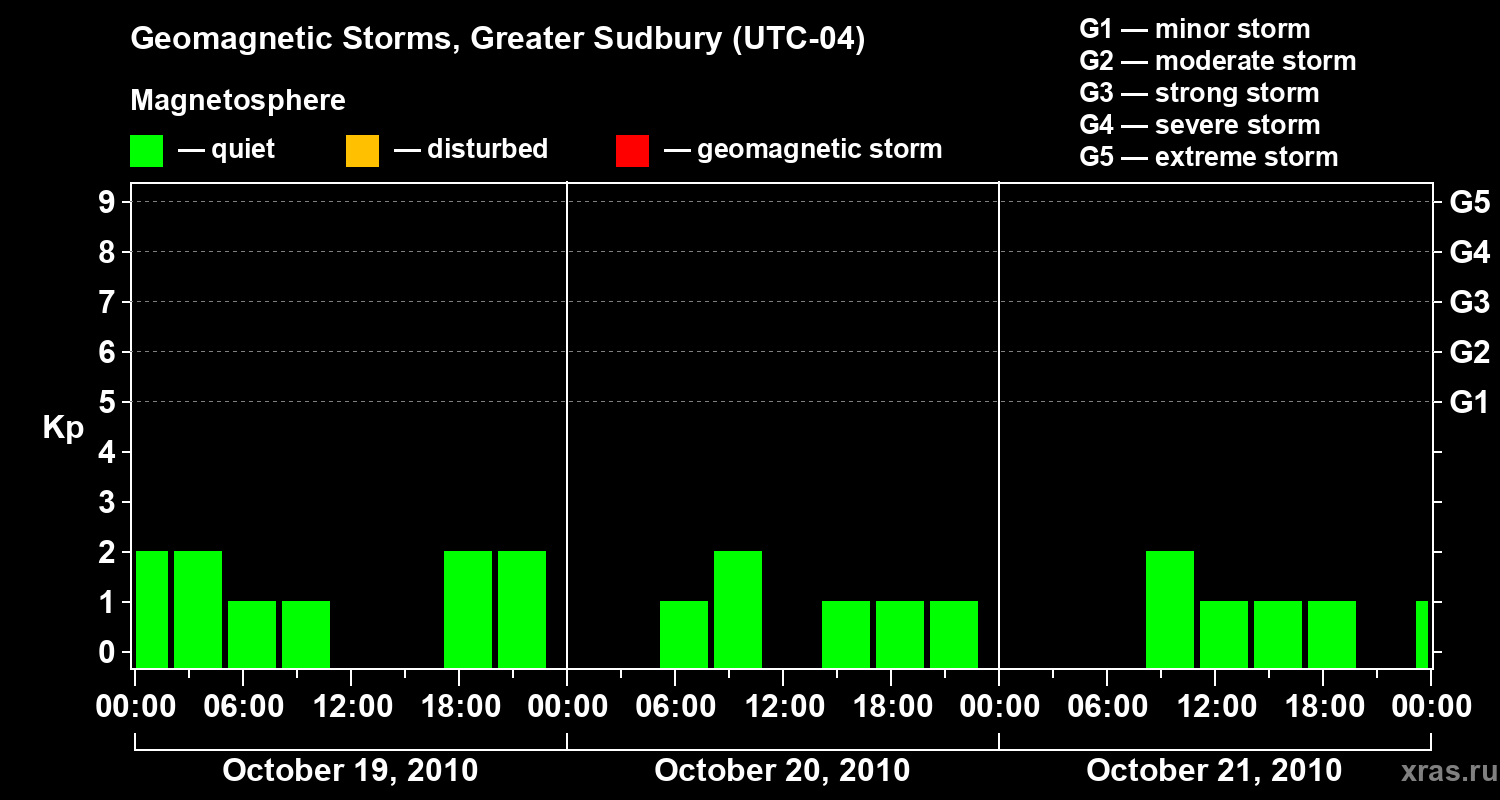 Geomagnetic storms in Greater Sudbury on Oct 21, 2010