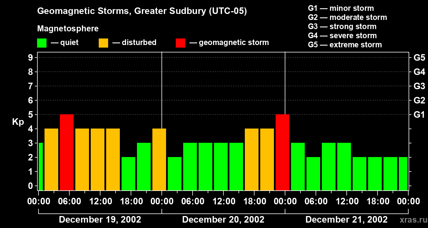 Geomagnetic storms in Greater Sudbury on Dec 21, 2002