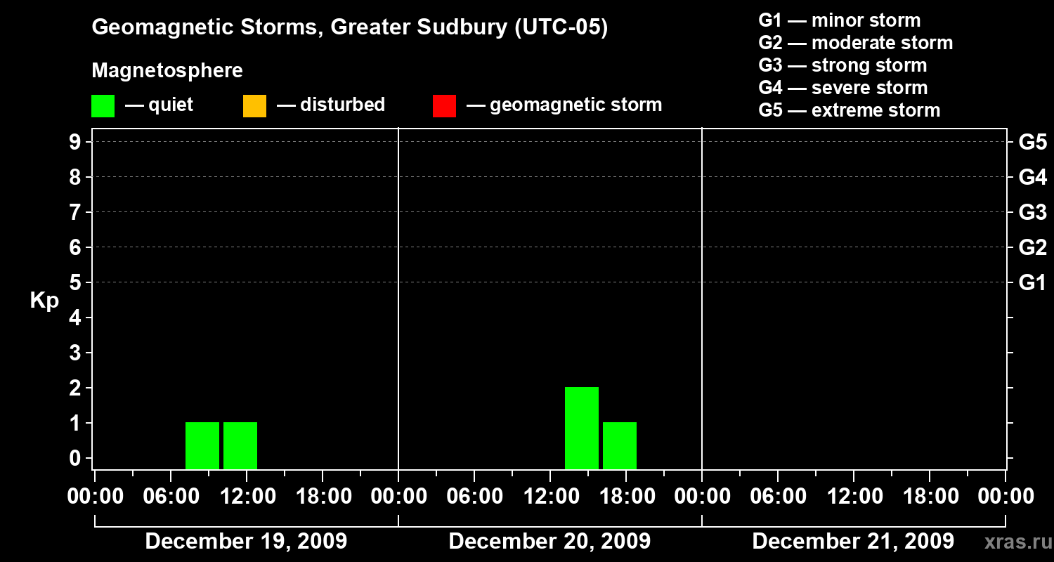 Geomagnetic storms in Greater Sudbury on Dec 21, 2009