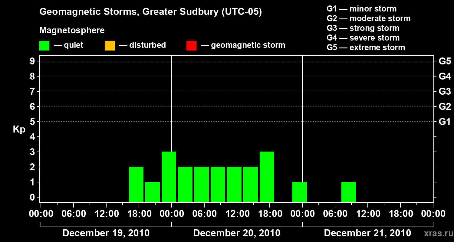 Geomagnetic storms in Greater Sudbury on Dec 21, 2010