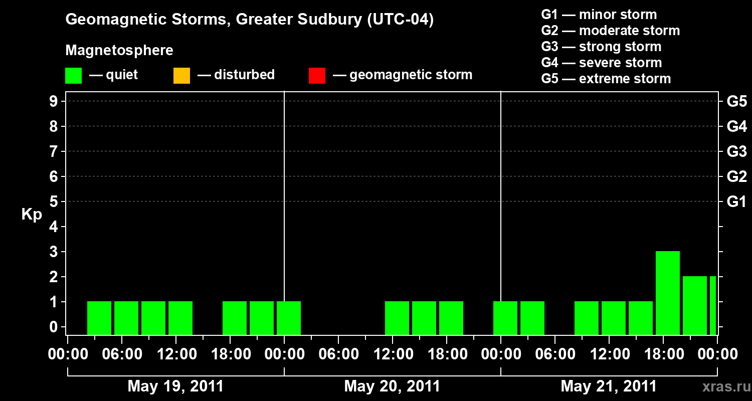 Geomagnetic storms in Greater Sudbury on May 21, 2011