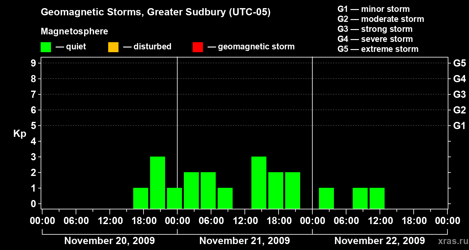 Geomagnetic storms in Greater Sudbury on Nov 22, 2009
