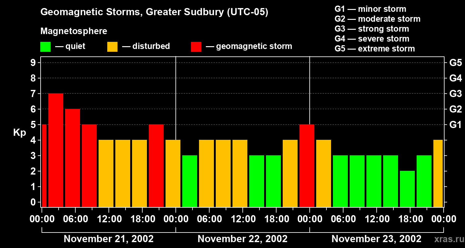 Geomagnetic storms in Greater Sudbury on Nov 23, 2002