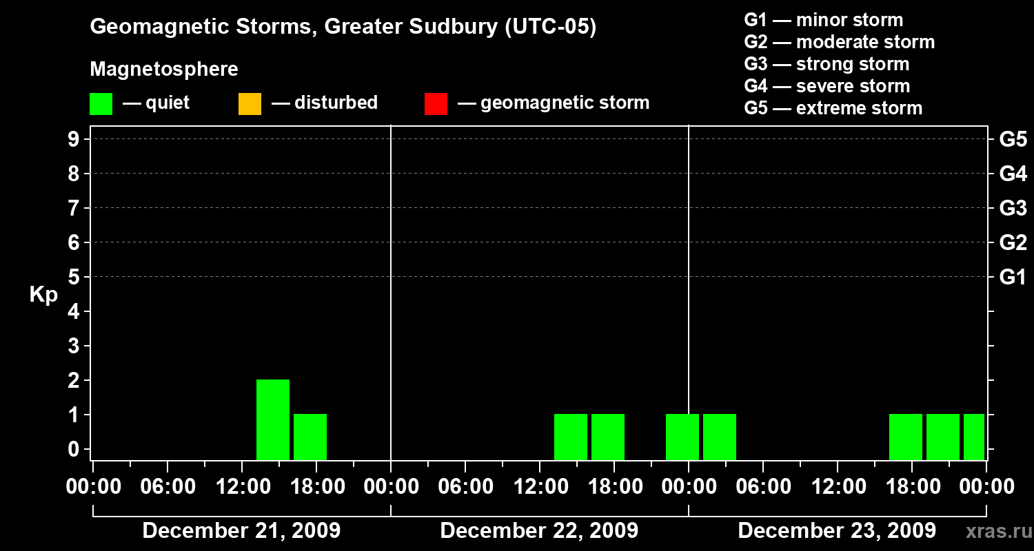 Geomagnetic storms in Greater Sudbury on Dec 23, 2009