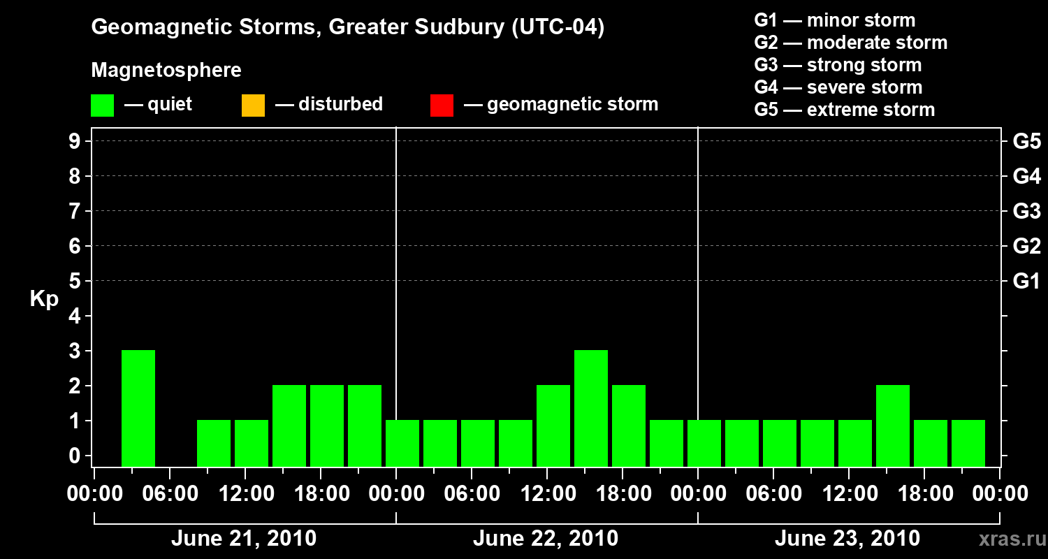Geomagnetic storms in Greater Sudbury on Jun 23, 2010