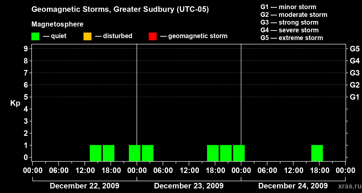Geomagnetic storms in Greater Sudbury on Dec 24, 2009