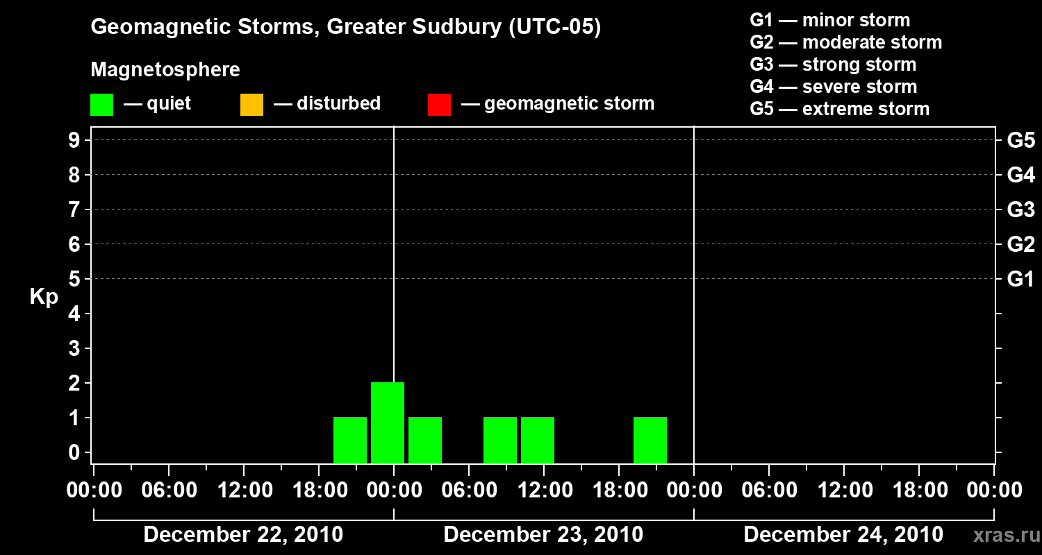 Geomagnetic storms in Greater Sudbury on Dec 24, 2010