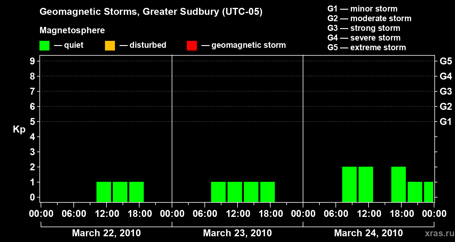 Geomagnetic storms in Greater Sudbury on Mar 24, 2010