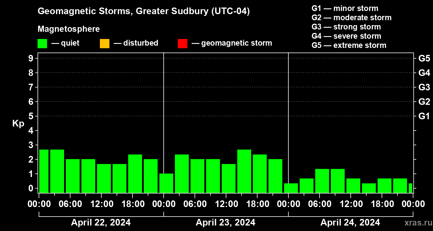 Geomagnetic storms in Greater Sudbury on Apr 24, 2024