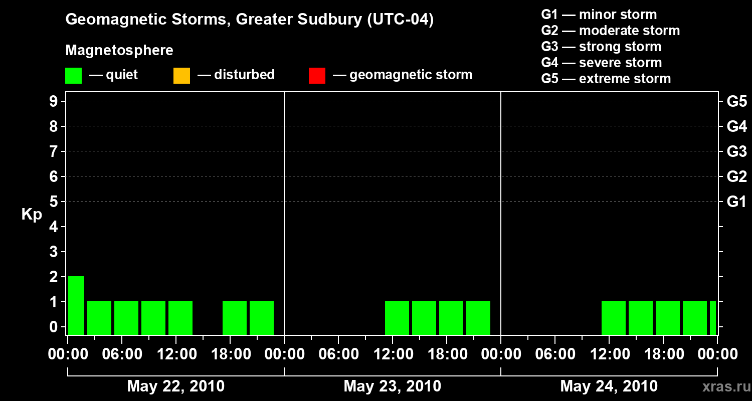 Geomagnetic storms in Greater Sudbury on May 24, 2010