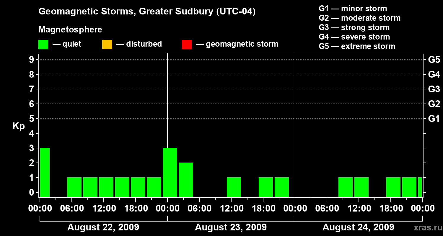 Geomagnetic storms in Greater Sudbury on Aug 24, 2009