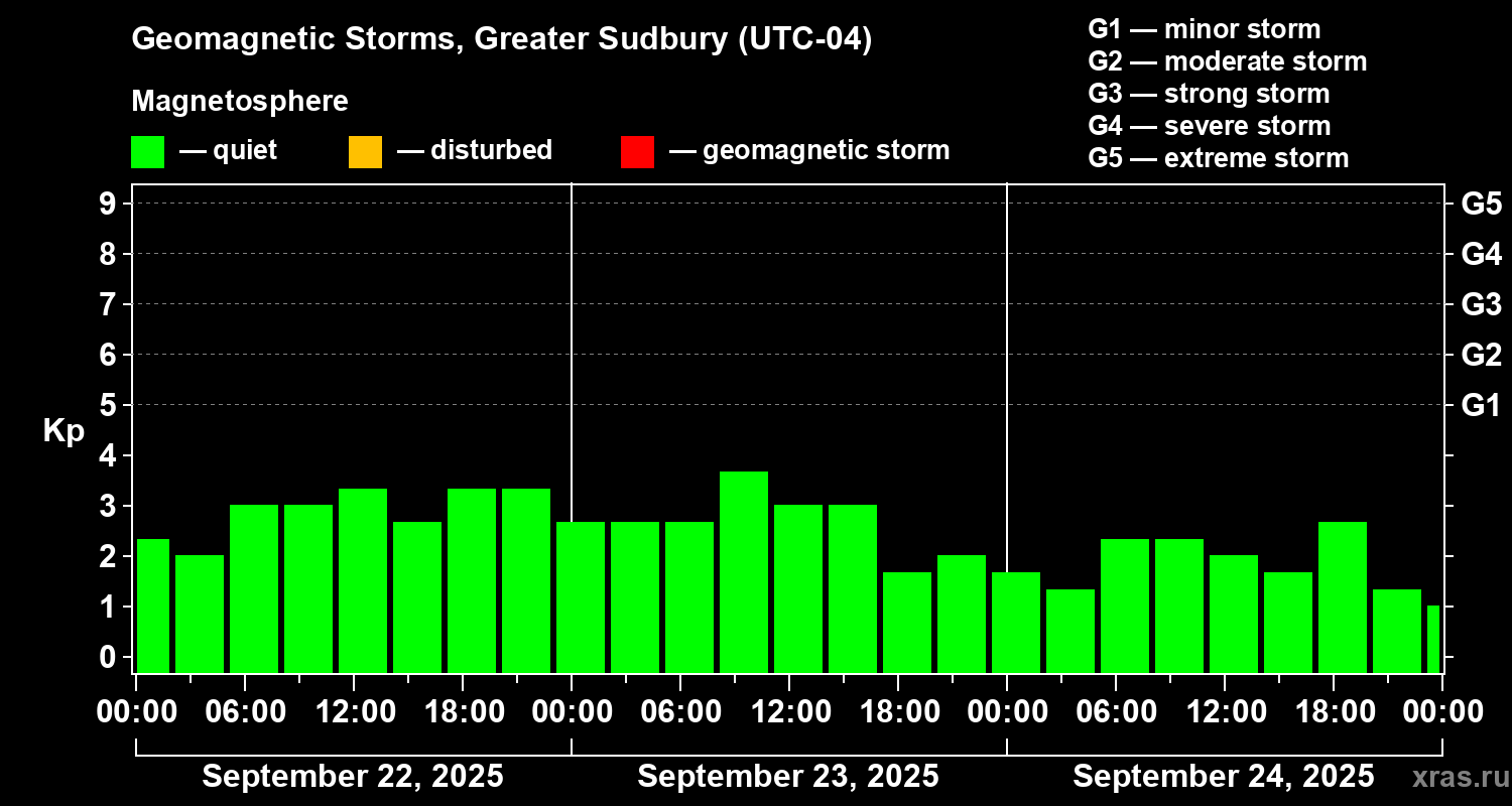 Geomagnetic storms in Greater Sudbury — Sep 24, 2025