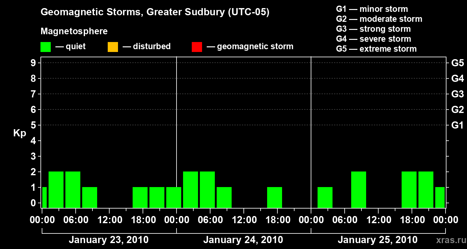 Geomagnetic storms in Greater Sudbury on Jan 25, 2010