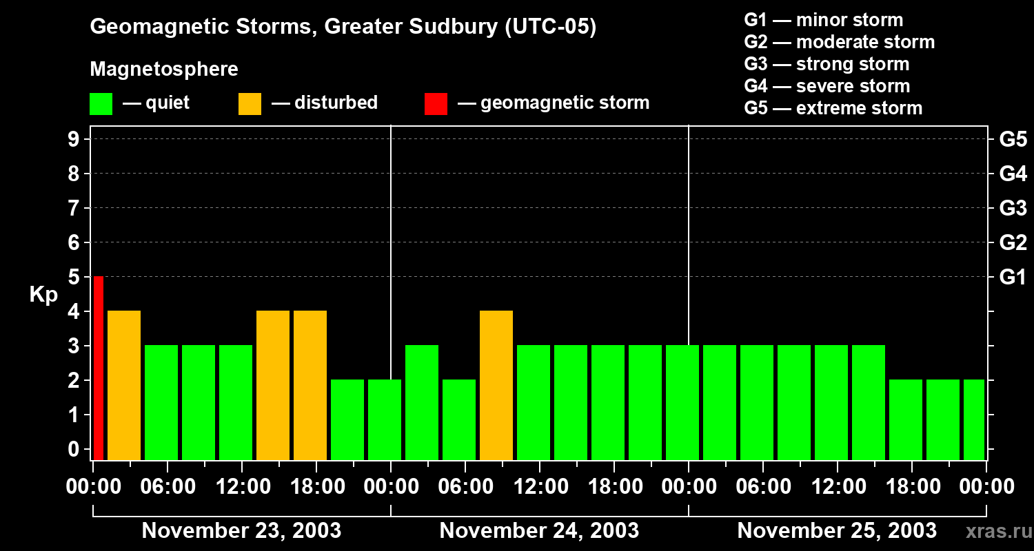 Geomagnetic storms in Greater Sudbury on Nov 25, 2003