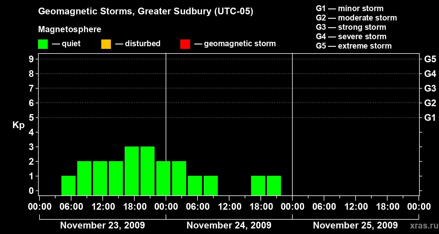 Geomagnetic storms in Greater Sudbury on Nov 25, 2009