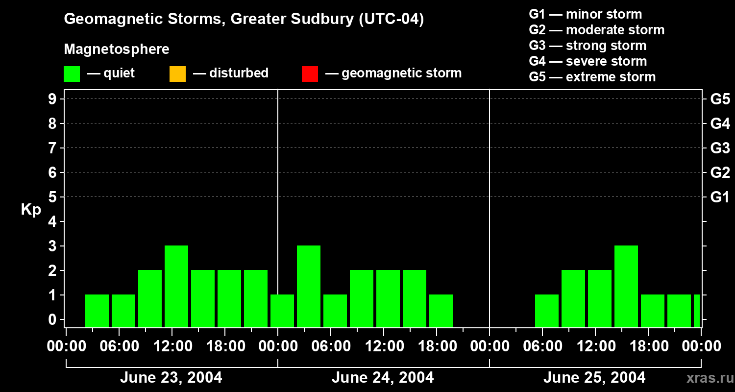 Geomagnetic storms in Greater Sudbury on Jun 25, 2004