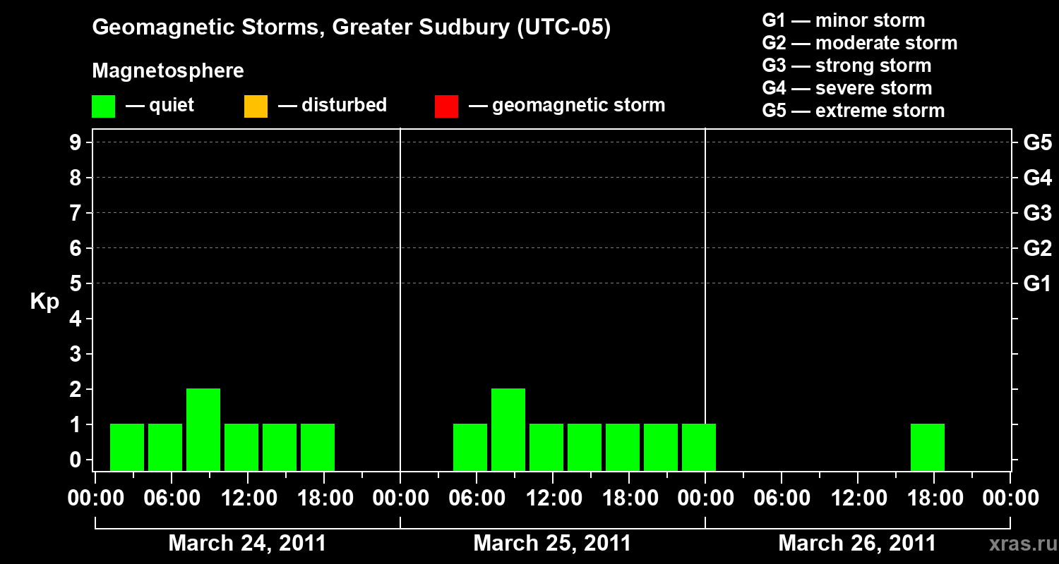 Geomagnetic storms in Greater Sudbury on Mar 26, 2011