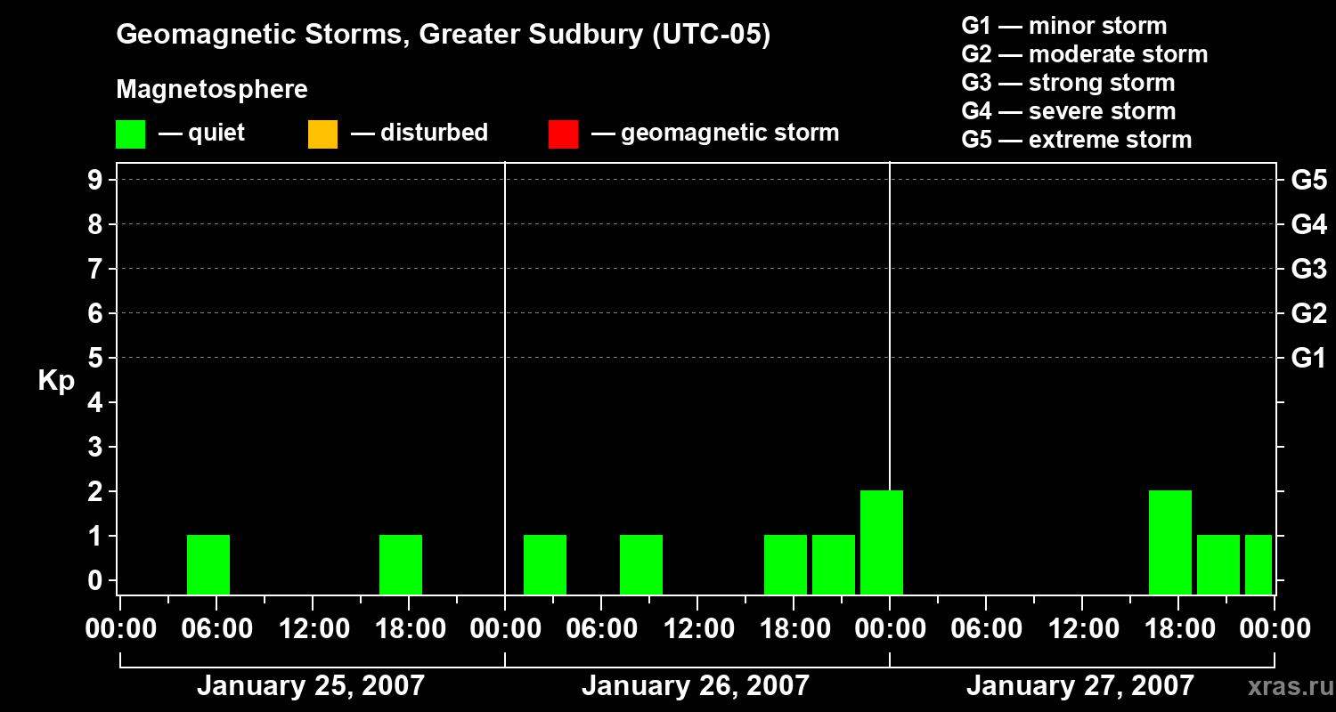 Geomagnetic storms in Greater Sudbury on Jan 27, 2007