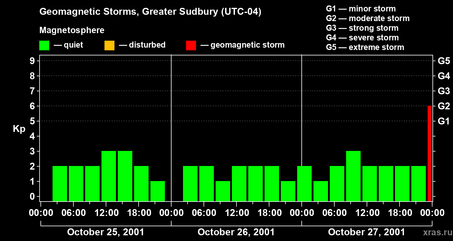 Geomagnetic storms in Greater Sudbury on Oct 27, 2001