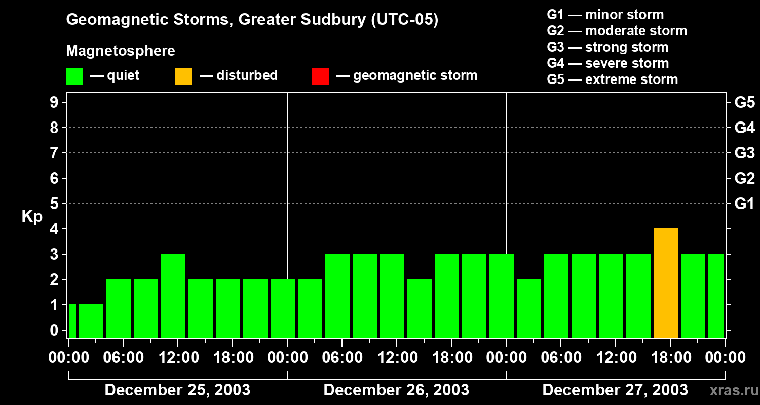 Geomagnetic storms in Greater Sudbury on Dec 27, 2003