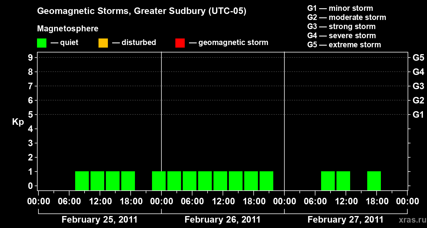 Geomagnetic storms in Greater Sudbury on Feb 27, 2011