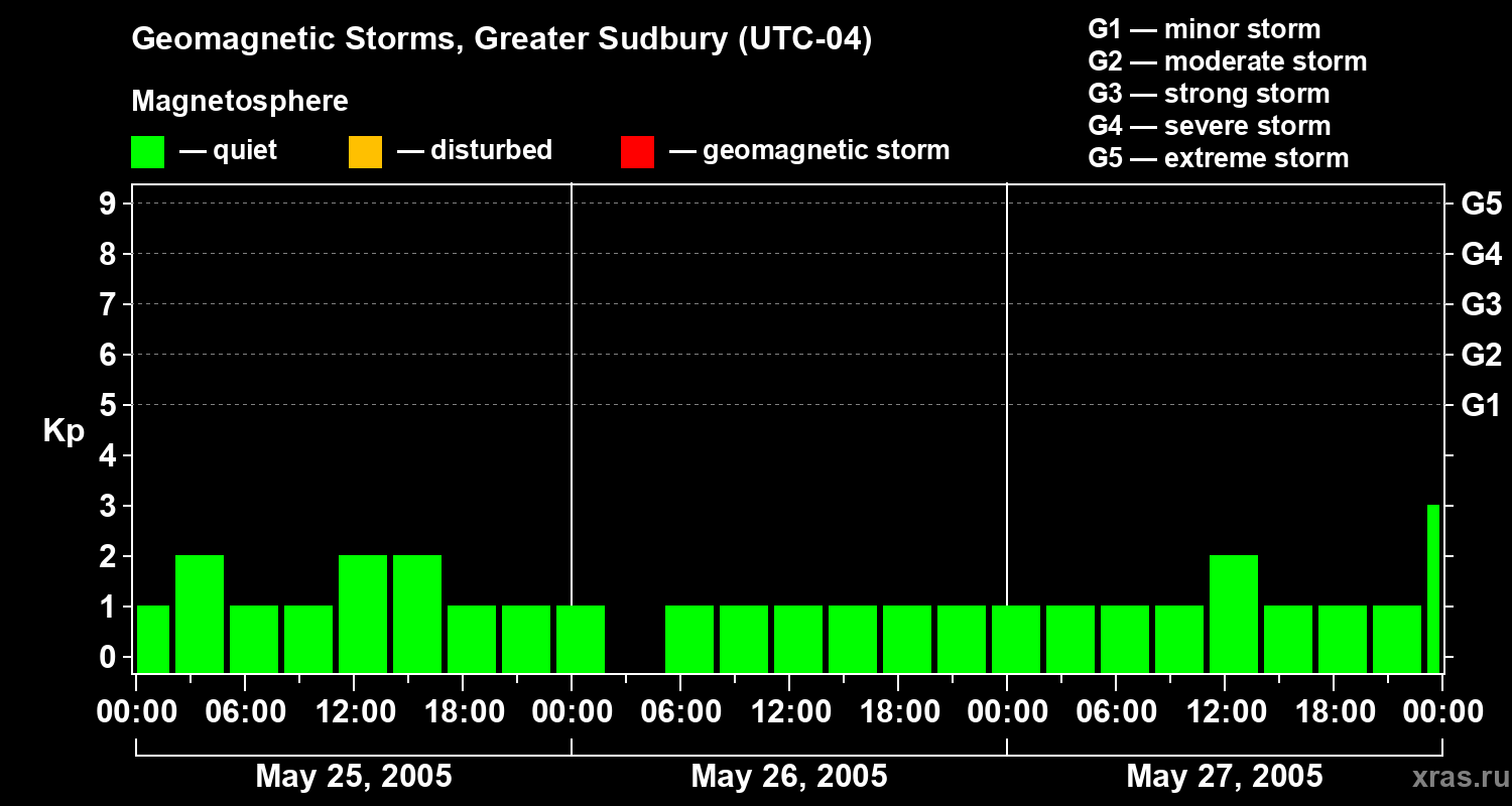 Geomagnetic storms in Greater Sudbury — May 27, 2005