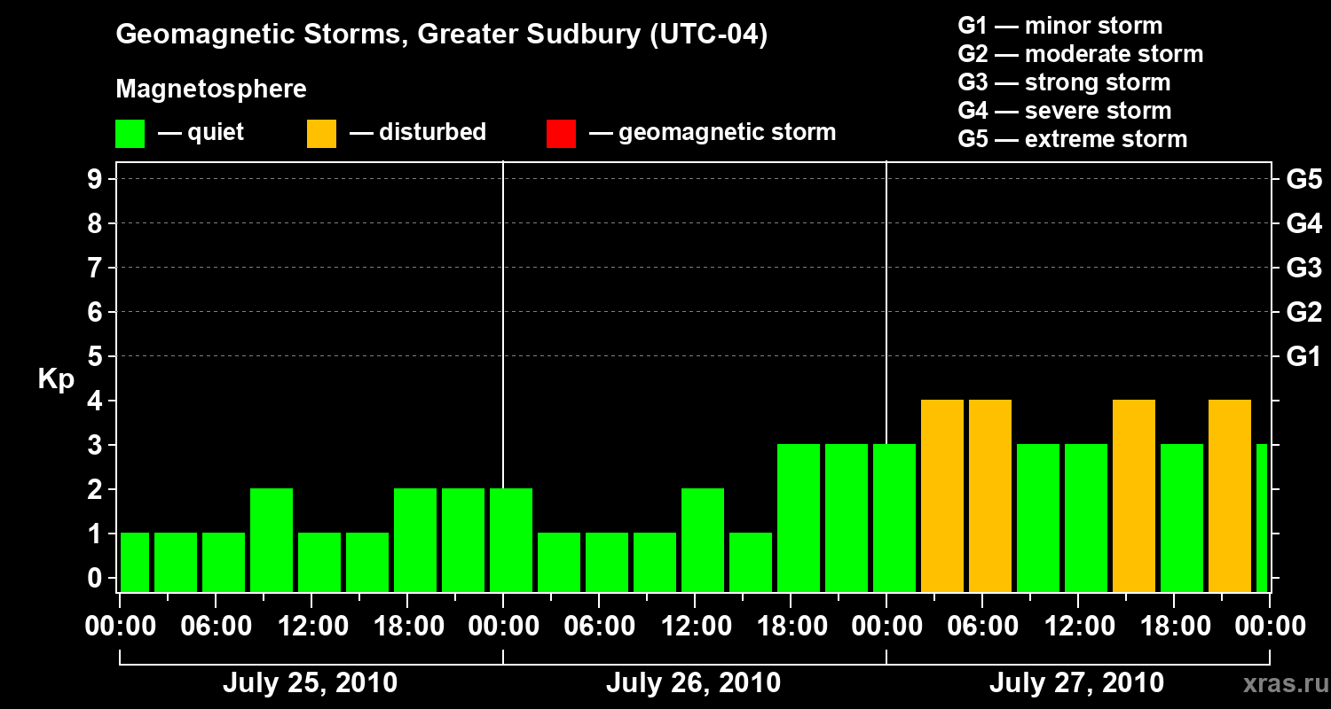 Geomagnetic storms in Greater Sudbury — Jul 27, 2010