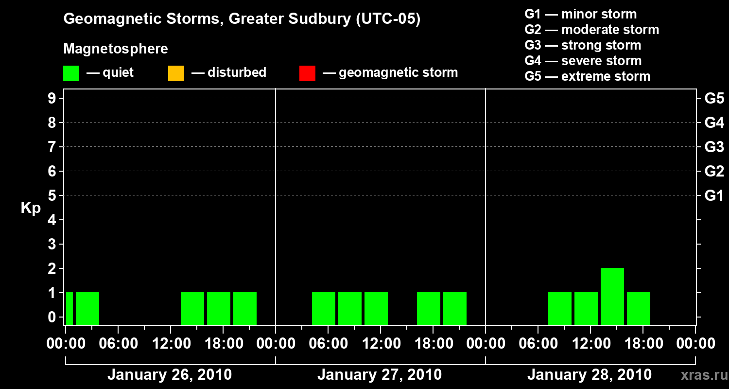 Geomagnetic storms in Greater Sudbury on Jan 28, 2010