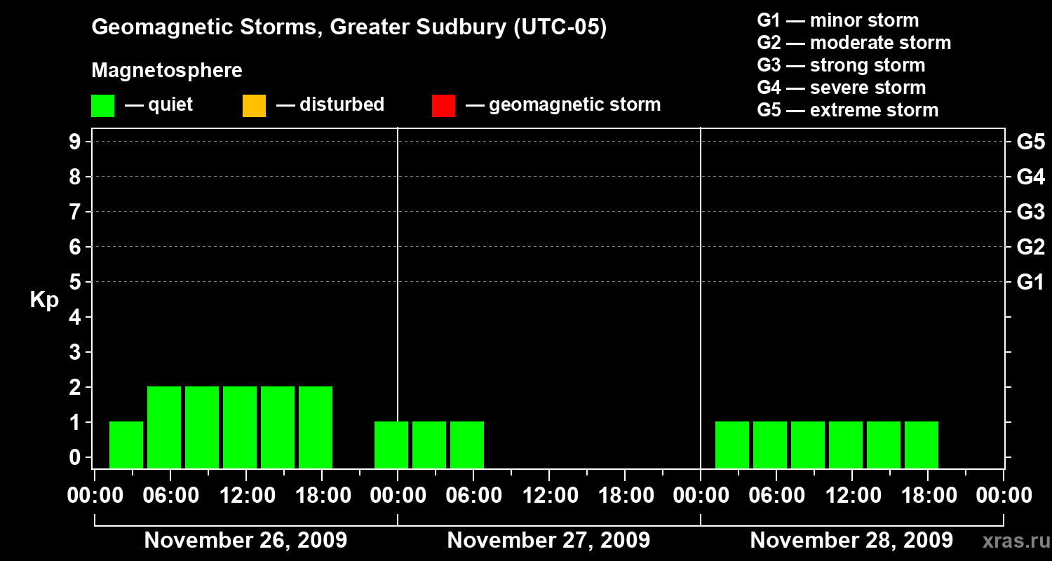 Geomagnetic storms in Greater Sudbury on Nov 28, 2009