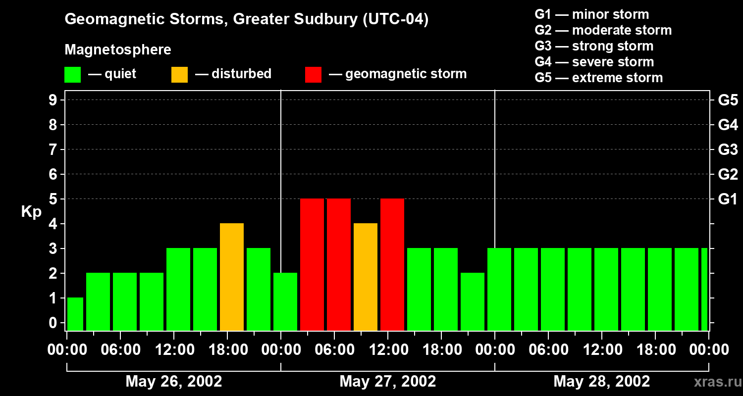 Geomagnetic storms in Greater Sudbury on May 28, 2002
